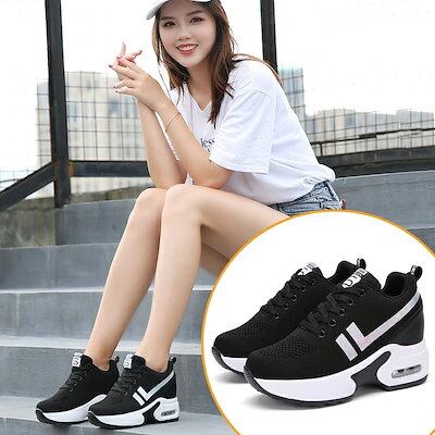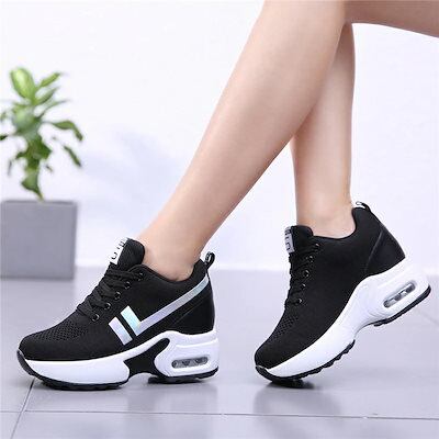 スニーカー インヒール レディース 厚底 インヒールスニーカー レディース シークレットシューズ 軽量 美脚 細脚 8cm厚底 シューズ レースアップ ヒールアップ 身長アップ 厚底シューズ 歩きやす | HUG-L