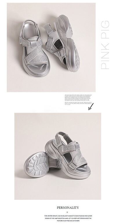 2024新作!厚底サンダル サンダル レディース 韓国ファッション スポサンサンダル 7cmヒール ビジューサンダル きれいめ らくちん ぺたんこ 大人 高見え シルバー ブラック 韓国ファッション | HUG-L