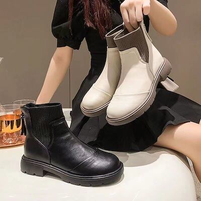 【3日以内出荷】厚底シューズ ヒールパンプス厚底スニーカーシューズブーツ レディース スタイルアップ!ヒールパンプス新作マーティンブーツガール2023秋冬ソックスブーツにスエードを重ねて使えるショート