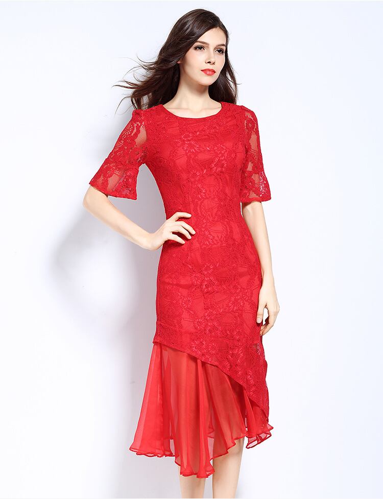 L〜6L★大きいサイズ 出かけ パーディー 二次会 異素材 マーメイドライン ドレスワンピース