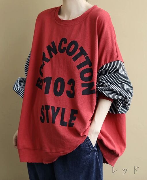 スウェット トレーナー プリント 切り替え バイカラー 体型カバー 着痩せ シンプル カジュアル パーカー カットソー 配色