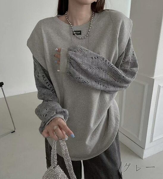 スウェット トレーナー 体型カバー 着痩せ 切り替え シンプル カジュアル パーカー カットソー