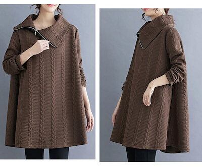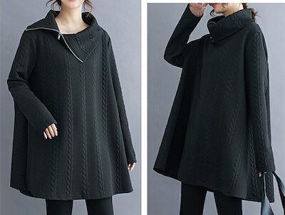 チュニック ワンピース 長袖 ワンピース トレーナー レディース ハーフジップ チュニック ハイネック ワンピ ゆったり長袖 きれいめ 春 秋 冬 Aライン シンプル カジュアル 楽ちん お
