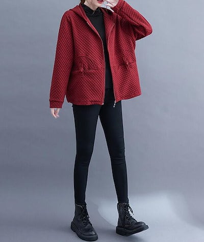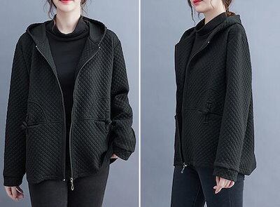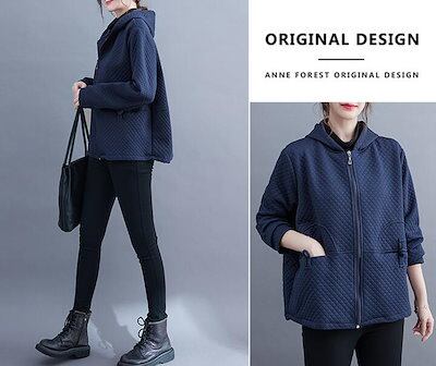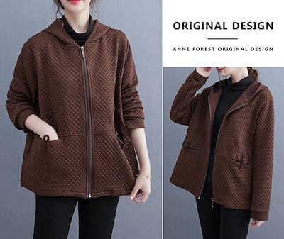 パーカーコート レディース 大きいサイズ キルティング ジャケット アウター フード付き トレーナー スウェット コート ポケット付き 長袖 ゆったり ジップアップ 春 秋 L 2L 3L | HUG-L