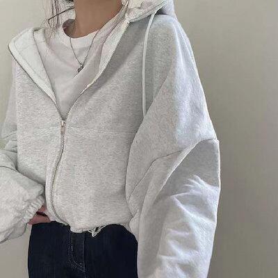 ジップアップパーカー レディース 秋 春 パーカー ジャケット スウエット フード付き パーカー コート ショート丈 コート トップス 大人 軽量 シンプル 無地 普段着 着回し力 着痩せ 体型カ