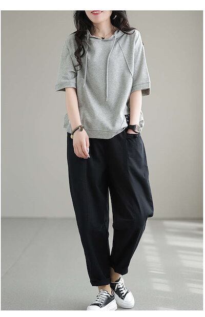 パーカー 半袖 スウェット レディース 夏 秋 春 トレーナー フード付き 半袖パーカー トップス 重ね着 レイヤード風 無地 シンプル ゆったり カジュアル 大きいサイズ ゆるっと ビッグシルエッ | HUG-L