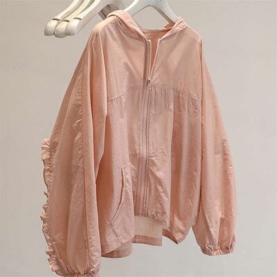 UVカットパーカー レディース シアー パーカー UVパーカー 春 夏 接触冷感 薄手 透け感 袖ボリューム ジップアップ シアー ジャケット uvカット 撥水 速乾 通気 長袖 軽量 羽織 フード | HUG-L