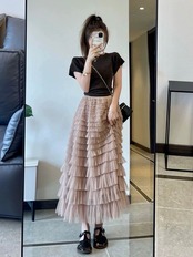 初回送料無料 ショート上着とケーキスカート2点セット 半袖夏トップス おしゃれスカート 人気上着