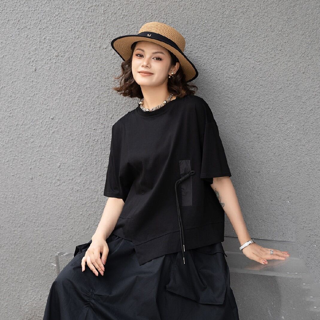初回送料無料 夏レディースファッション カジュアル ゆったり アンバランス 半袖 人気トップス