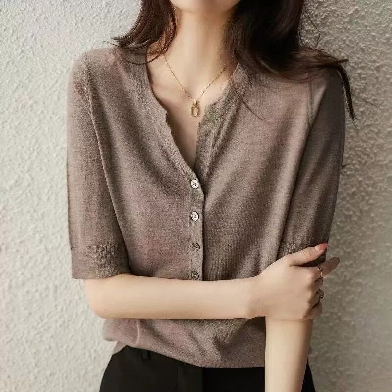 初回送料無料 トップス 半袖ニットトップス 半袖ブラウス クルーネック レーディスファション商品