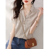 初回送料無料 ストライプの半袖トップス おしゃれトップス カジュアル上着 人気ブラウス 洋服
