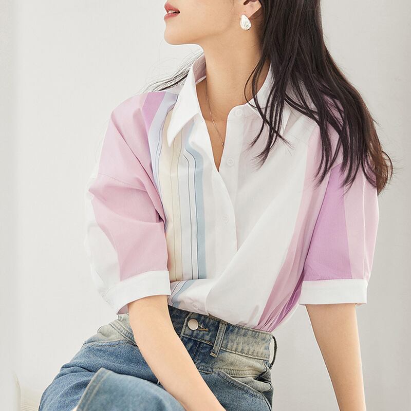 初回送料無料 ストライプのトップス 半袖トップス レーディスファション商品 カジュアル上着
