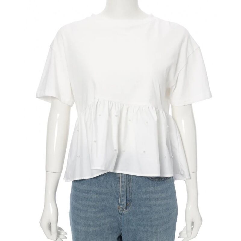 初回送料無料 新品ゆるいTシャツ 半袖パールトップス レーディスファション商品 トップス