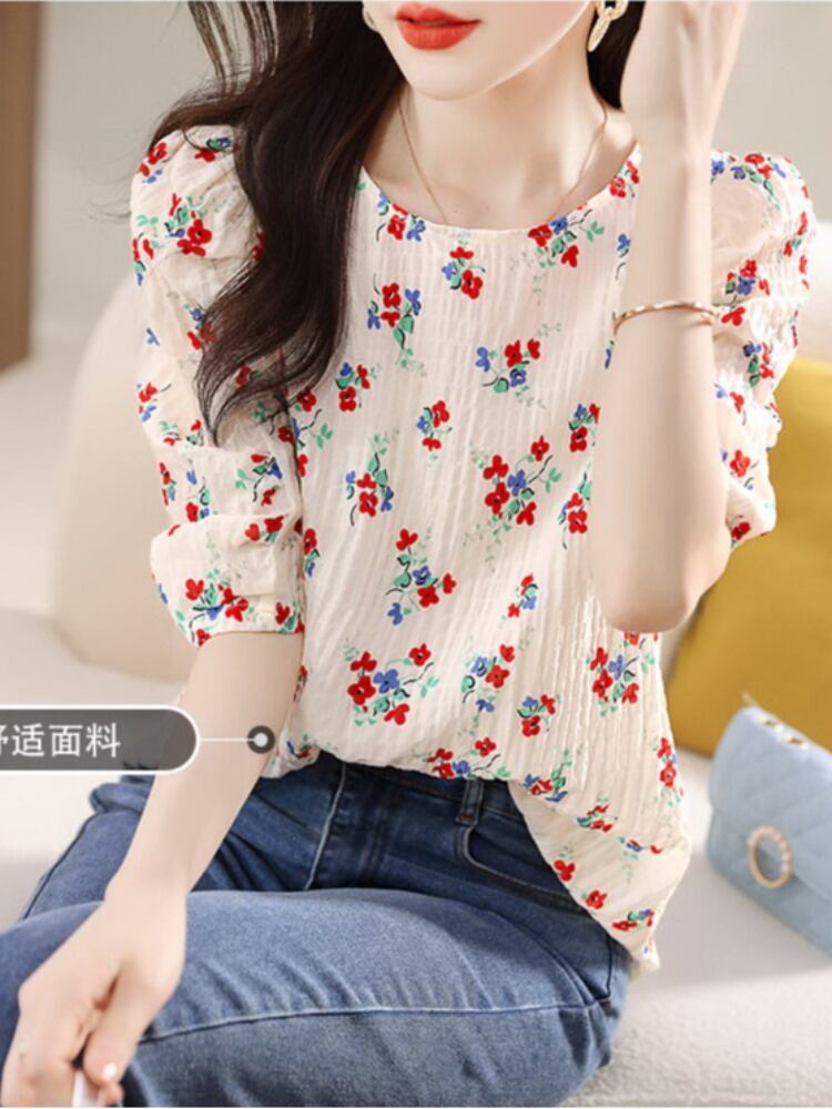 初回送料無料 砕花半袖上着 シャツ風トップス レディースファション商品 おしゃれトップス 人気上着