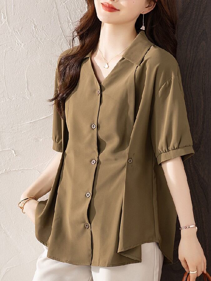 初回送料無料 夏vネック半袖シャツ 着?せ見え上着 おしゃれなトップス 人気商品