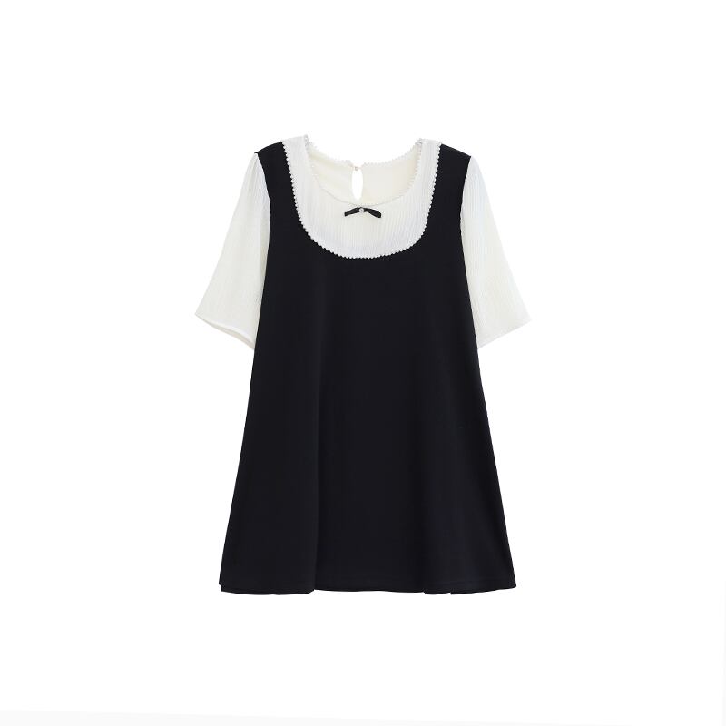 初回送料無料 夏のTシャツ 半袖フェイク2枚ビーズ付き上着 おしゃれなトップス 人気