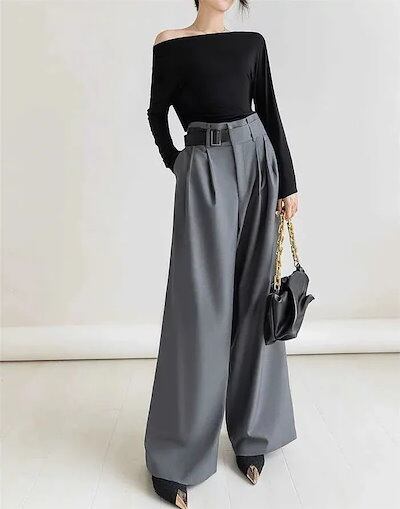 ワイドパンツタックワイドパンツレディースボトムスパンツイージーパンツワイドパンツワイドアシンメトリーガウチョパンツ大きいサイズロングパンツオリジナルハイウエストマキシ丈マジックテープ上品きれいめ通勤オ | HUG-L