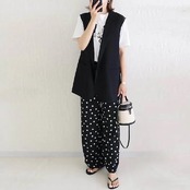 ワイドパンツ レディース ドット柄 ボトムス ロング丈 パンツ ガウチョパンツ ガウチョ ロングパンツ 水玉柄 きれいめ 大きいサイズ ウエストゴム 涼しい 楽ちん ゆったり ドット 着?せ | HUG-L