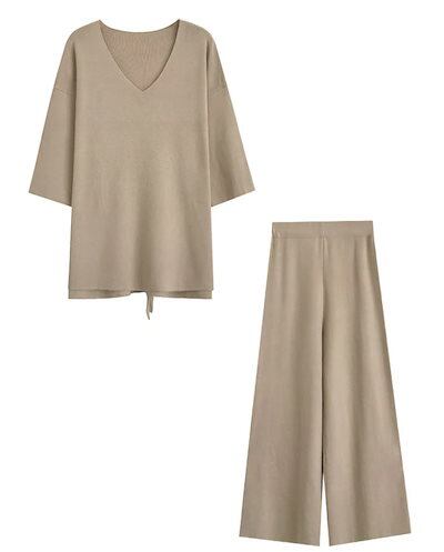 韓国ファッション大きいサイズレディースニット二点セットアップ上下ワイドパンツロング長袖トップス服福袋