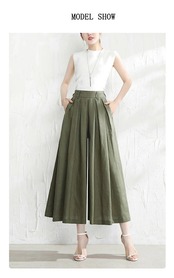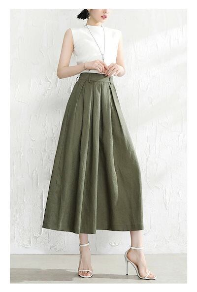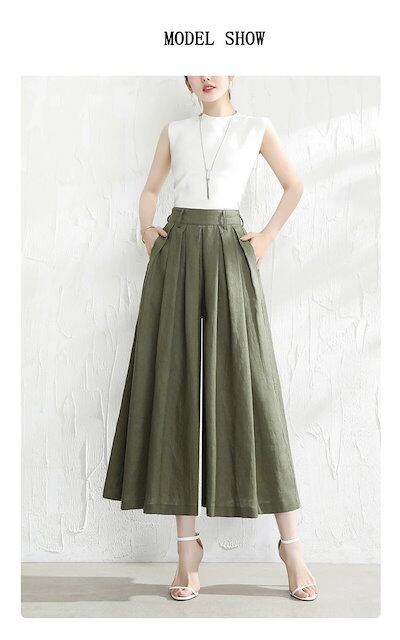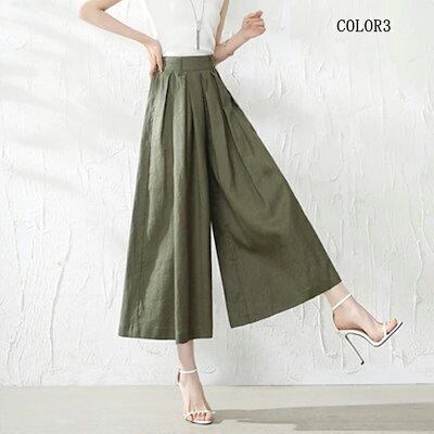 ワイドパンツ 綿麻パンツ 七分丈 薄手 大きいサイズ ポケット ウェストゴム ボトムス レディース 夏 無地 クロップド 体型カバー ハイウエスト 冷感 きれいめ 着痩せ ゆったり シンプル | HUG-L