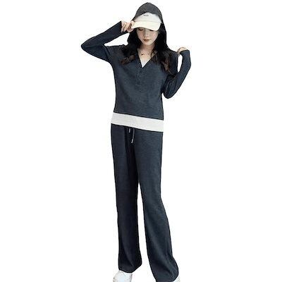 春秋 セットアップ 運動 スウェット ジャケット フード付き ワイドパンツ ストレート アウター 柔らかい お肌に優しい スカート 大きいサイズ ゆったり カジュアル レディース