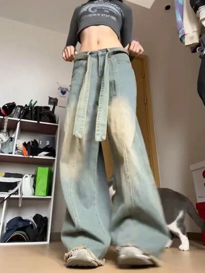 大きいサイズ デニムジーンズ アメリカ レトロ ワイドパンツ ジーパン レディー ストレートパンツ ゆったり ロングパンツ