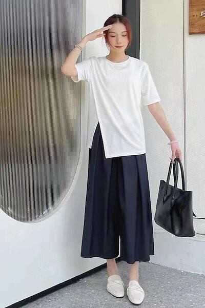 ガウチョパンツ ワイドパンツ パンツ レディース ワイド ボトムス 春 夏 ロング 9分丈 ガウチョ パンツ スカーチョ ボトムス 大きいサイズ スカート ポケット付き ハイウエスト ウエストゴム 体 | HUG-L