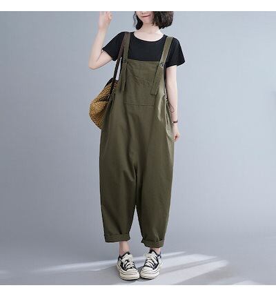 サロペット オールインワン レディース 春 ワイドパンツ 無地 ロングパンツ ワイド ガウチョパンツ ボトムス 体型バー ゆったり 大きいサイズ 着痩せ マキシ ポケット付き 通勤 通学 20代 30 | HUG-L