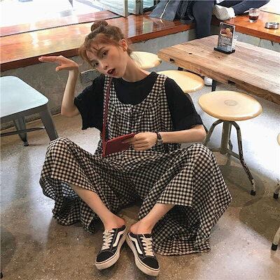 サロペット パンツ レディース ワイドパンツ オールインワン 春 大きいサイズ チェック ガウチョパンツ ロングパンツ オーバーオール 体型カバー ゆったり 美脚 綿麻 着痩せ ロング リラックス カ | HUG-L