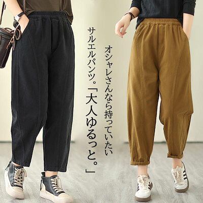 テーパードパンツ パンツ ボトムス ワイドパンツ ガウチョパンツ レディース 秋 冬 ゆったり ハロンパンツ 無地 ロングパンツ ガウチョ サルエルパンツ 秋物 ウエストゴム 綿混 大きいサイズ 体型 | HUG-L
