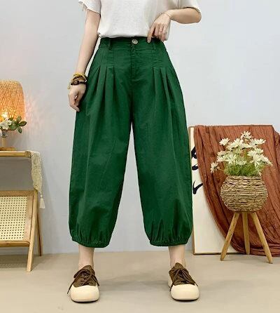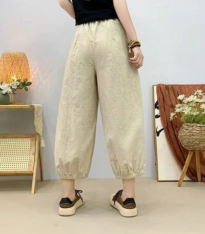 バルーンパンツ レディース 夏 サルエルパンツ パンツ ワイド ガウチョパンツ ジョガーパンツ 綿麻風 9分丈 ボトムス タック入り ゴム 無地 ワイドパンツ 大きいサイズ 体型カバー ゆったり カジ | HUG-L