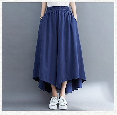 パンツ ワイドパンツ レディース ロング ガウチョパンツ ボトムス 無地 ロングパンツ ガウチョ 体型カバー 9分丈 フレア ゆったり 美脚 体型カバー シンプル カジュアル風 ウエストゴム アシンメ | HUG-L