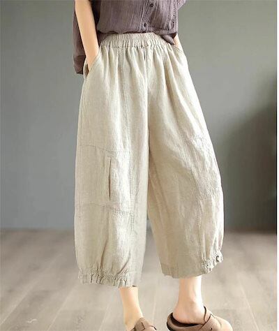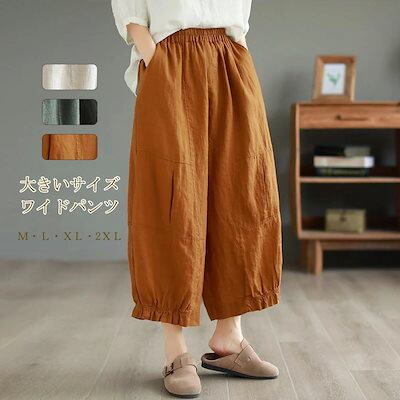パンツ ワイドパンツ レディース パンツ ロングパンツ 綿麻 ワイド ガウチョパンツ 9分丈 大きいサイズ 夏 秋 ボトムス ロング丈 ハイウエスト ガウチョ ワイド リネンパンツ バルーンパンツ 無 | HUG-L