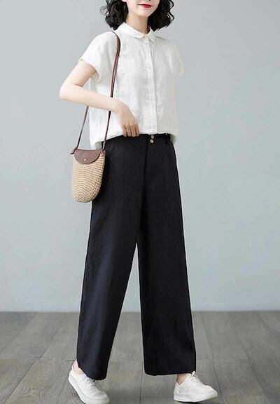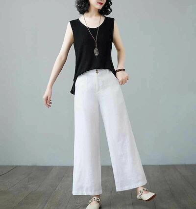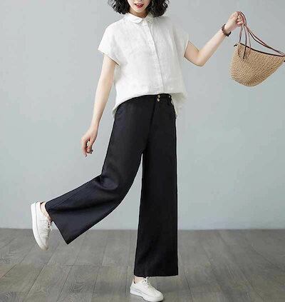 ワイドパンツ ガウチョパンツ レディース 春 ボトムス ストレートパンツ ズボン ガウチョ ゆったり 無地 ロングパンツ ウエストゴム 大きいサイズ 体型カバー 薄手 春 夏 着痩せ 美脚 20代 3 | HUG-L