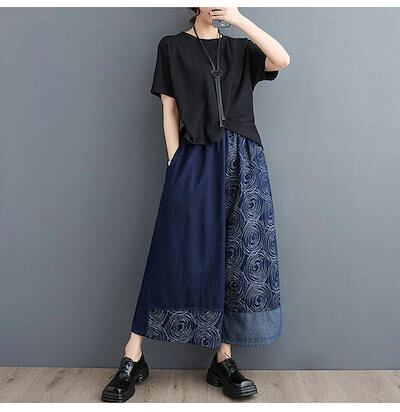 ワイドパンツ デニムパンツ パンツ レディース ワイド デニム 春 夏 ガウチョパンツ ロング 9分丈 ガウチョ パンツ スカーチョ ボトムス 大きいサイズ スカート ロングパンツ ハイウエスト ウエ | HUG-L