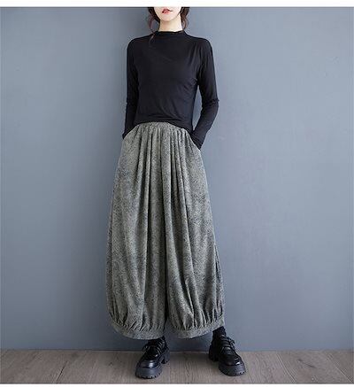 ワイドパンツ パンツ ガウチョパンツ キュロット ロングパンツ レディース 秋冬 ワイド 体型カバー 無地 ガウチョ ハイウエスト ウエストゴム 大きいサイズ ポケット付き ロング丈 ゆったり 黒パン | HUG-L