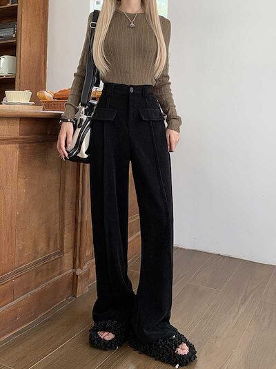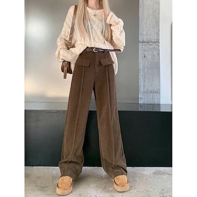 ワイドパンツ パンツ レディース コーデユロイ ロングパンツ ガウチョパンツ 秋 マキシ ボトムス ストレートパンツ ロングパンツ ワイド ガウチョ 美脚 体型カバー ボトムス 無地 大きいサイズ ロ | HUG-L