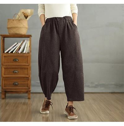 【冬新作】ガウチョパンツ ワイドパンツ レディース ウール調 裏起毛 秋冬 微起毛 体型カバー ボトムス 秋 ロングパンツ キュロット 暖かい 防寒 パンツ ハロンパンツ テーパードパンツ 高見え パ | HUG-L