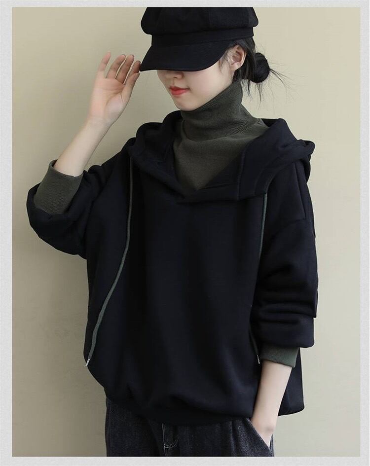 初回送料無料 新作レディースファッション フェイク2枚  フード付き 帽子付きパーカー トップス