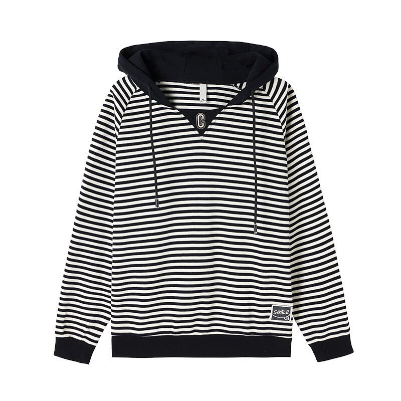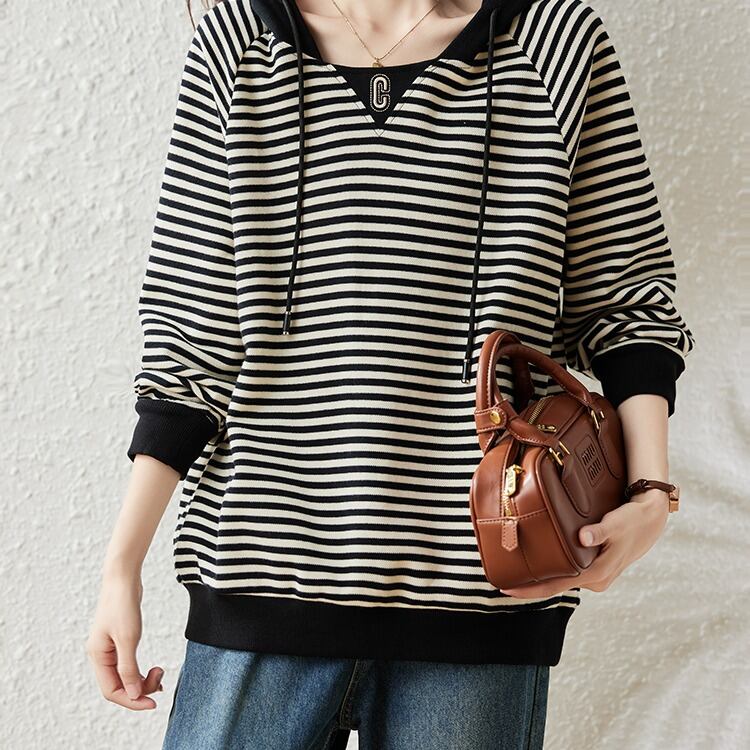 初回送料無料 レディースファッション フード付き カジュアル ストライプ パーカー トップス