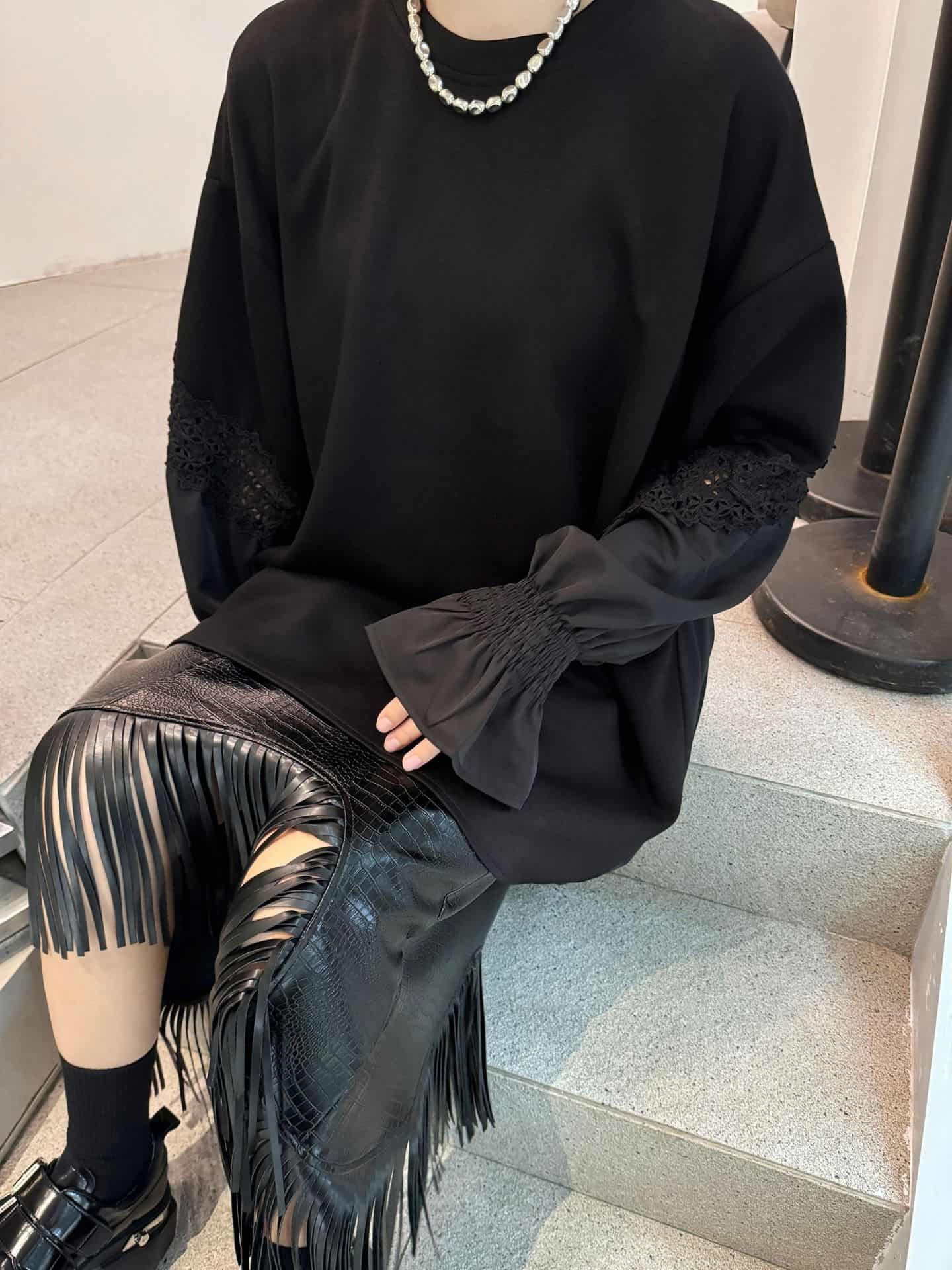 u25687 レディース レース パーカー クルーネック 2024秋冬新作 無地