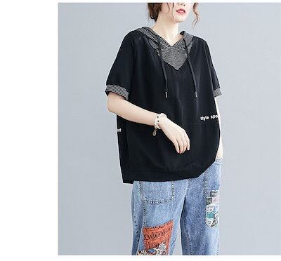 パーカー 半袖 スウェット レディース 夏 秋 春 トレーナー フード付き 半袖パーカー トップス 重ね着 レイヤード風 無地 シンプル ゆったり カジュアル 大きいサイズ ゆるっと 着?せ お洒落