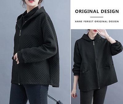 パーカーコート レディース 大きいサイズ キルティング ジャケット アウター フード付き トレーナー スウェット コート ポケット付き 長袖 ゆったり ジップアップ 春 秋 L 2L 3L