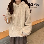 ボアパーカー レディース 秋冬 プルオーバー トップス ボア 重ね着風 大きいサイズ ボアパーカー レディース フード付き ジャージ 長袖 無地 春 秋 ドロップショルダー ゆったり 柔らかい お洒落 | HUG-L