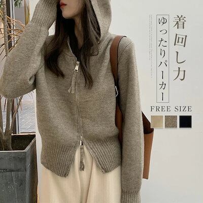 パーカー レディース ジップアップ パーカー ジャケット 秋 春 フード付き パーカー ショート丈 コート トップス 大人 シンプル 無地 普段着 着回し力 着痩せ 体型カバー 春秋 ゆったり カ | HUG-L