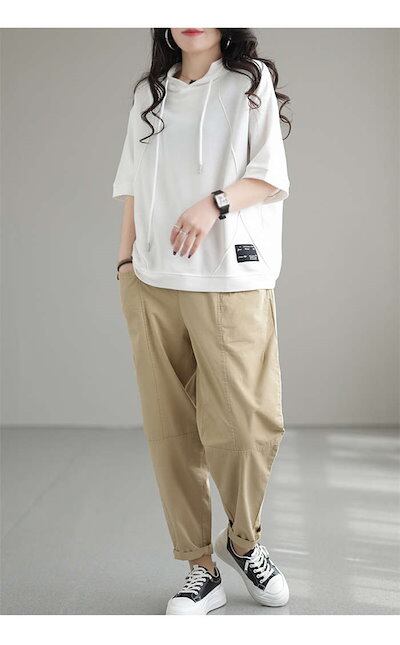 パーカー 半袖 スウェット レディース 夏 秋 春 トレーナー フード付き 半袖パーカー トップス 重ね着 レイヤード風 無地 シンプル ゆったり カジュアル 大きいサイズ ゆるっと ビッグシルエッ