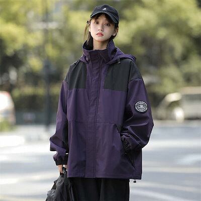 マウンテンパーカー フード 春 秋 トップス ジャケット 冬 冬服 撥水 配色 防風 ウインドブレーカー レディース メンズ ユニセックス ジップパーカー ナイロン 男女兼用 防寒 パーカー アウトド | HUG-L
