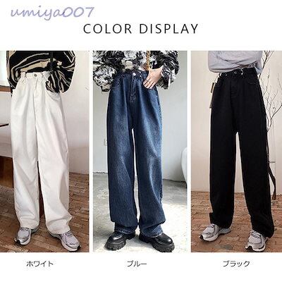 デニムパンツ レディース ワイドパンツ ハイウエスト ボトムス 着やせ ジーンズ ロングパンツ ウエスト調節可能 ゆったり