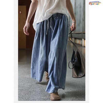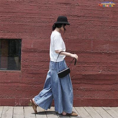 デニムパンツ パンツ スカーチョ ワイドパンツ スカンツ レディース ズボン デニム ハイウエスト 美脚 ポケット付き 無地 高級感 着痩せ 30代 40代 50代