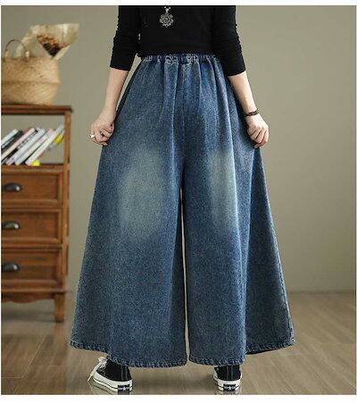 「ファットガール」 2024秋冬新品 デニムパンツ 大きいサイズ 体型カバー レディース ジーンズ ゴム ワイドパンツ ロングパンツ ハイウエスト メガ割